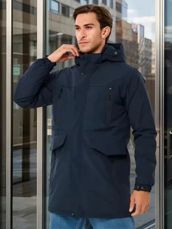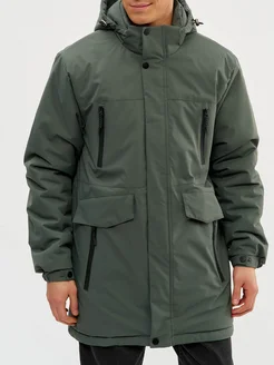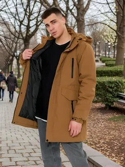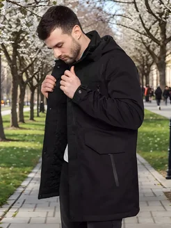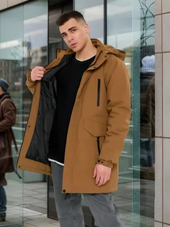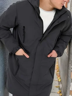 Куртка парка демисезонная удлиненная с капюшоном утепленная