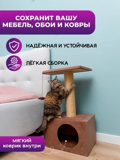 Домик для кошки мягкий с когтеточкой, 50х30х75