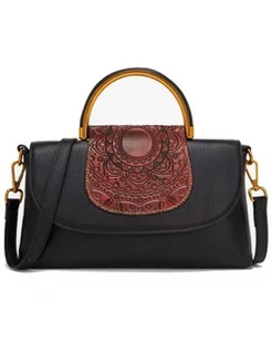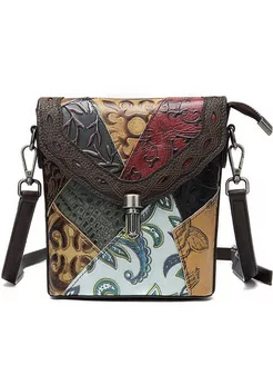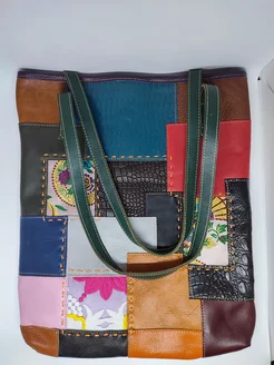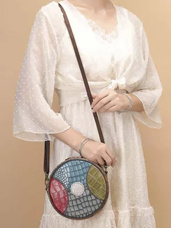 Круглая кожаная сумка в стиле ПЭЧВОРК