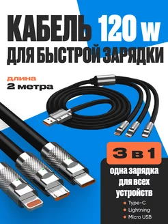 Кабель для зарядки 3 в 1 micro-USB Type-C Lightning 2m