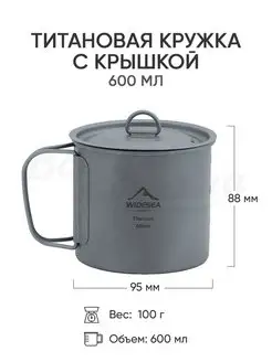 Титановая кружка с крышкой, туристическая, походная, котелок