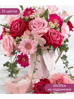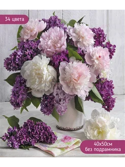 Алмазная мозаика на подрамнике 40х50, Сирень и пионы