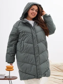 Куртка зимняя удлиненная с капюшоном больших размеров