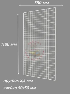 Решетка торговая белая 1180х580 мм, кант 6 мм, пруток 2,5 мм