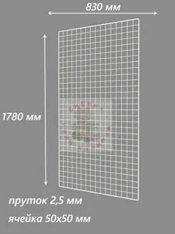Решетка торговая белая 1780х830 мм, кант 6 мм, пруток 2,5 мм