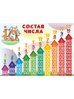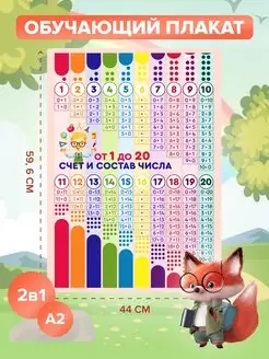 Обучающий плакат для детей счет и состав числа от 1 до 20 А2