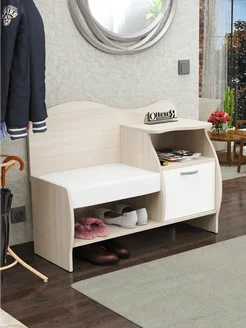Тумба для прихожей с сиденьем под обувь деревянная, обувница