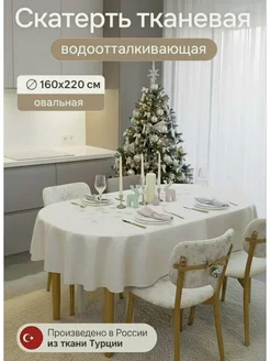 Скатерть на стол тканевая водоотталкивающая овальная 160х220