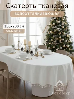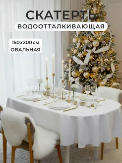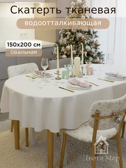 Скатерть на стол тканевая водоотталкивающая овальная 150х200
