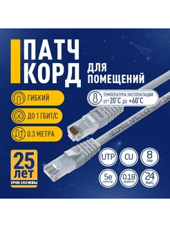 Патч-корд серый 0,3м UTP cat.5е многожильный (NM13001-003)