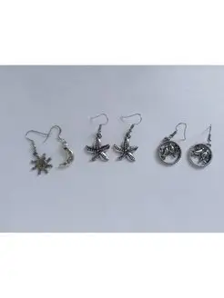 Серьги 3 пары "Месяц и Луна, Морские Звёзды, Птички"