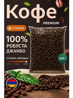 Кофе в зёрнах 100% Робуста "ДЖАМБО" 250Грамм