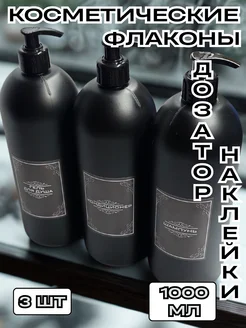 Флакон (бутылка) 1 л. HDPE с дозатором и крышкой, черный