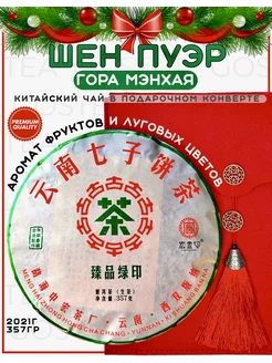 Китайский чай зеленый шен пуэр прессованный блин 357