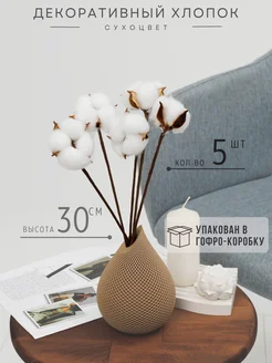 Сухоцветы хлопок 5 шт. для декора и флористики
