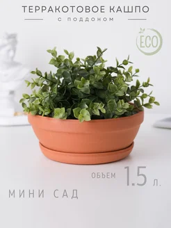 Горшок терракотовый цветочный кашпо, объем 0.5л, с поддоном