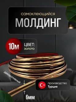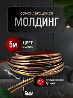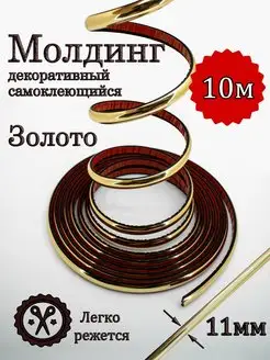Молдинг самоклеящийся на стену для декора гибкий Золото 11мм