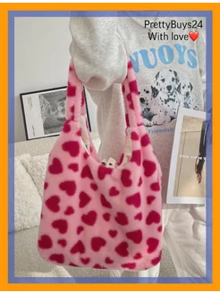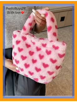Сумка плюшевая женская через плечо в стиле Y2K сердечки