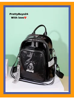 Рюкзак женский лакированный с пайетками