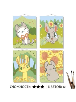 Картины по номерам 20х15 "Лесные малютки" 4шт