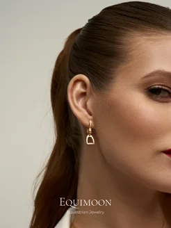 Серьги подвески стремя 925 серебро позолоченное