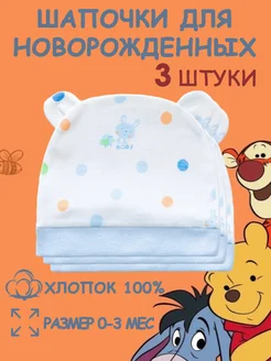 Чепчик шапочки для новорожденных набор 3 шт на выписку
