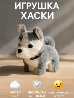 Интерактивный щенок хаски с мягкой шерстью и ошейником