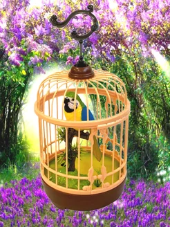 Птичка поющая Попугай в клетке игрушка интерактивная