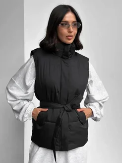 Жилетка утепленная демисезонная осенне-весенняя с поясом
