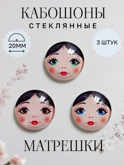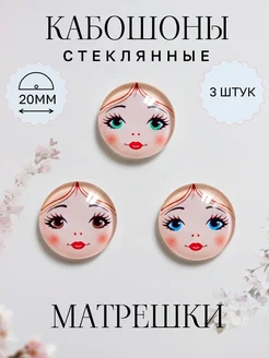 Кабошоны стеклянные лицо Матрешки 3 штуки