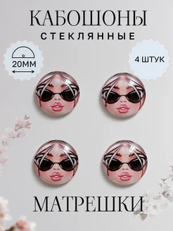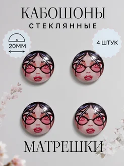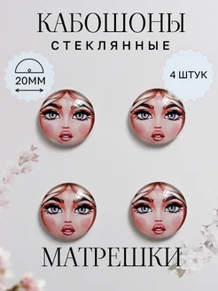 Кабошоны стеклянные лицо Матрешки 4 штуки