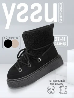 Дутики барашек на шнуровке зимние угги луноходы не скользят