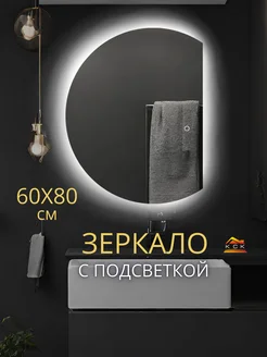Зеркало в ванную с подсветкой 60 на 80 см(полукруг правый)