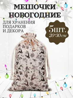 Мешочки подарочные новогодние с завязками для подарка