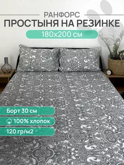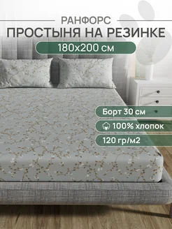 Простынь на резинке 180х200х30, Ранфорс, 100% хлопок