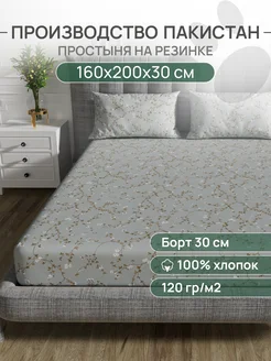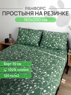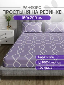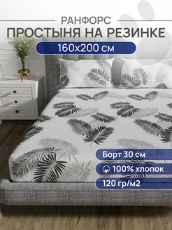 Простынь на резинке 160х200х30, Ранфорс, 100% хлопок