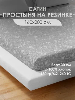 Простынь на резинке 160х200х30, Сатин, 100% хлопок