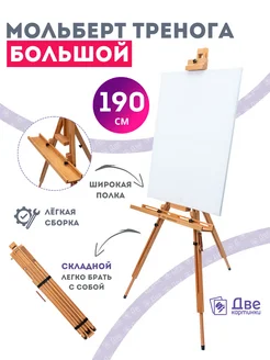 Мольберт тренога 190 см, лакированный, складной с подставкой