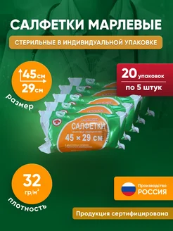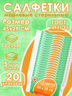 Салфетки марлевые медицинские стерильные 45х29, ГОСТ, 20 уп