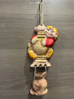 Оберег на дверь домовой держит подкову берегу счастье - 17см