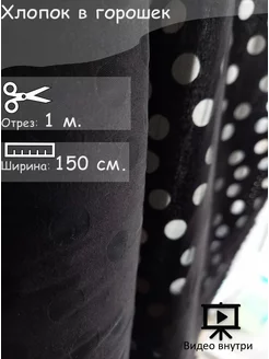 Ткань для рукоделия, хлопок черный в горошек, 1 х 1,50 м