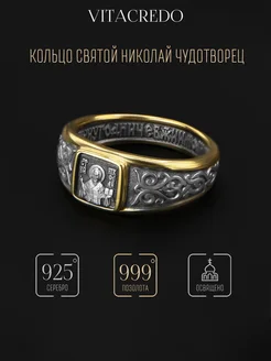 Серебряный перстень с позолотой Святой Николай Чудотворец