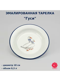 Тарелка эмалированная 0,3л Гуси - 2 штуки