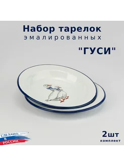 Тарелка эмалированная 0,5л Гуси - 2 штуки