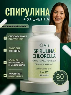 Спирулина + Хлорелла+Чага+Бета-Каротин+Витамин А - 60 капсул