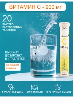 Витамин С шипучий 900 мг со вкусом лимона-20 таблеток