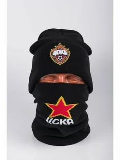 Комплект шапка и снуд зимняя для детей и взрослых ЦСКА