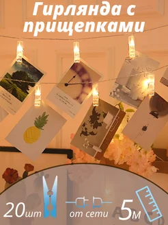 Электрогирлянда с прищепками, 5 м, работа от сети