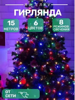 Электрогирлянда-нить на елку, 15 м, разноцветная