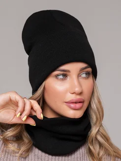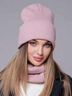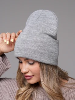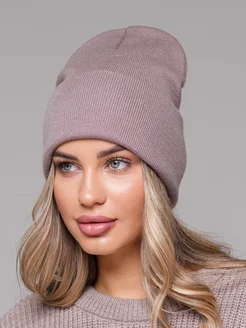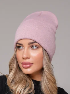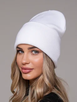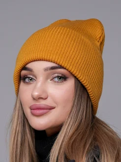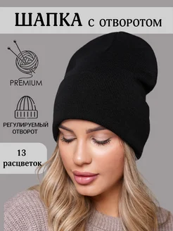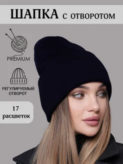Шапка женская зимняя осенняя вязаная бини с отворотом